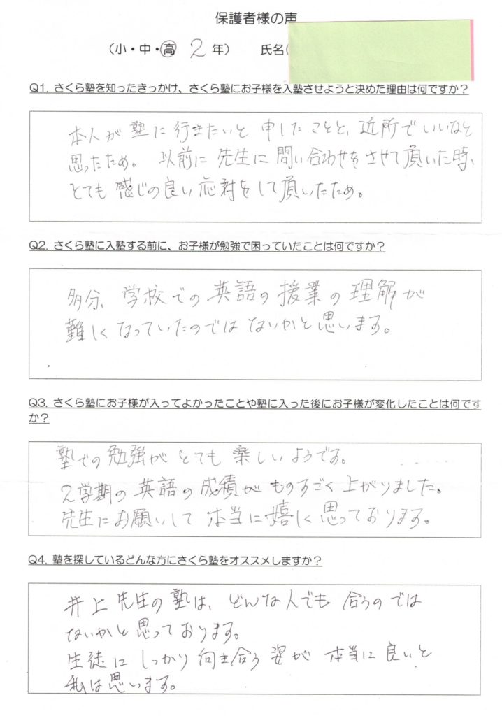 英語が得意な中学2年生は、高校英語を先取り学習をして、英検準2級に合格しました!