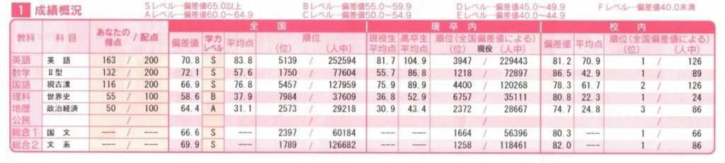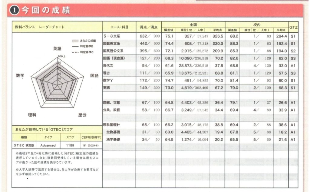 難関国公立大学から難関私立大学まで対応しています。また進研模試、全統模試で偏差値70を超えることができます。