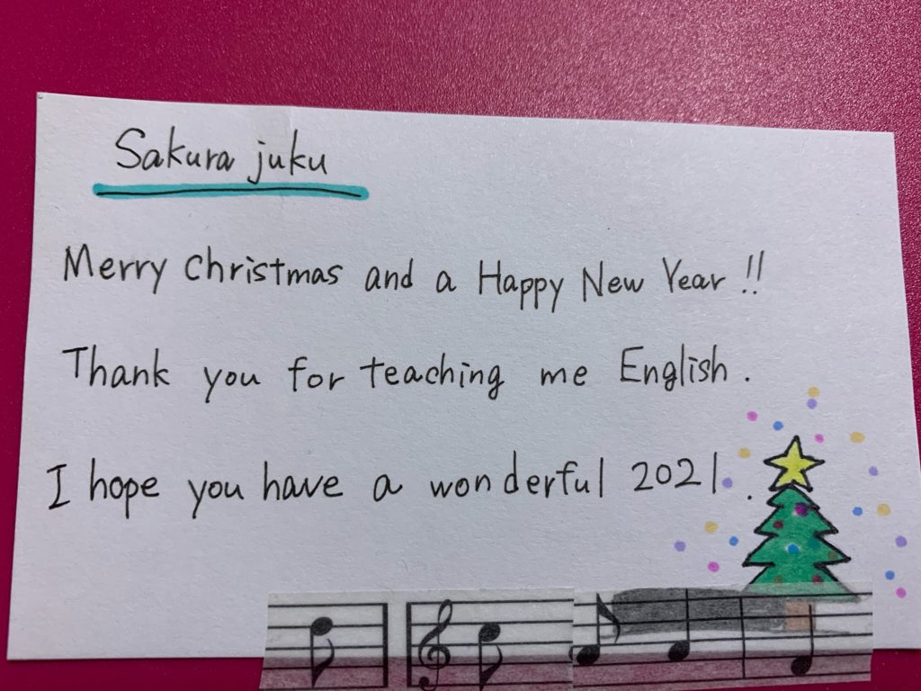 塾生からは中学校の授業で作成したカードをいただきました。