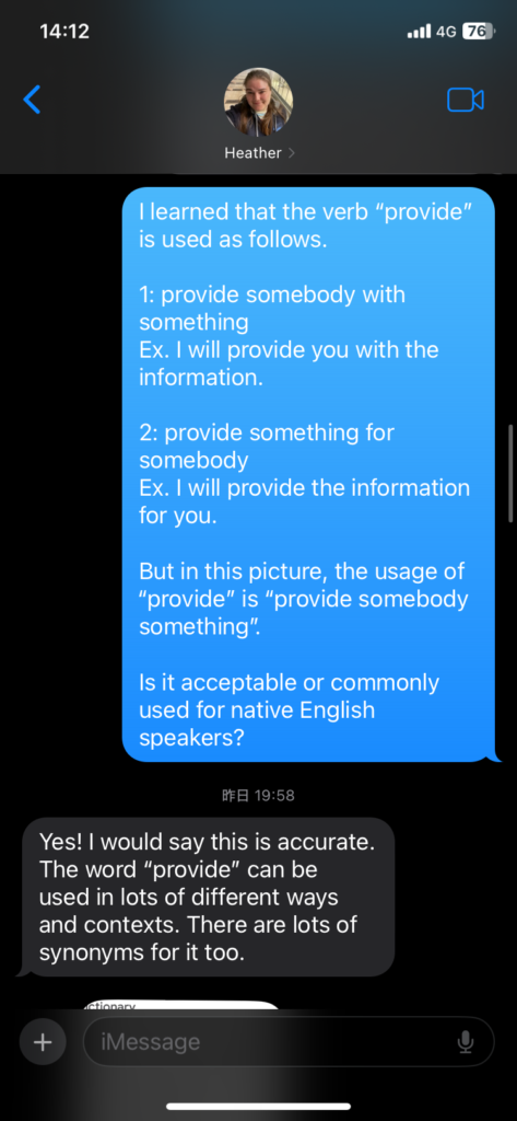 provideは「provide 人 with 物」または「provide 物 for 人」で習いましたが、写真では「provide O O」つまり第4文型で使われています。