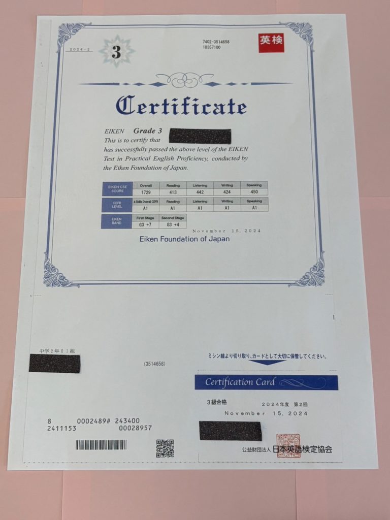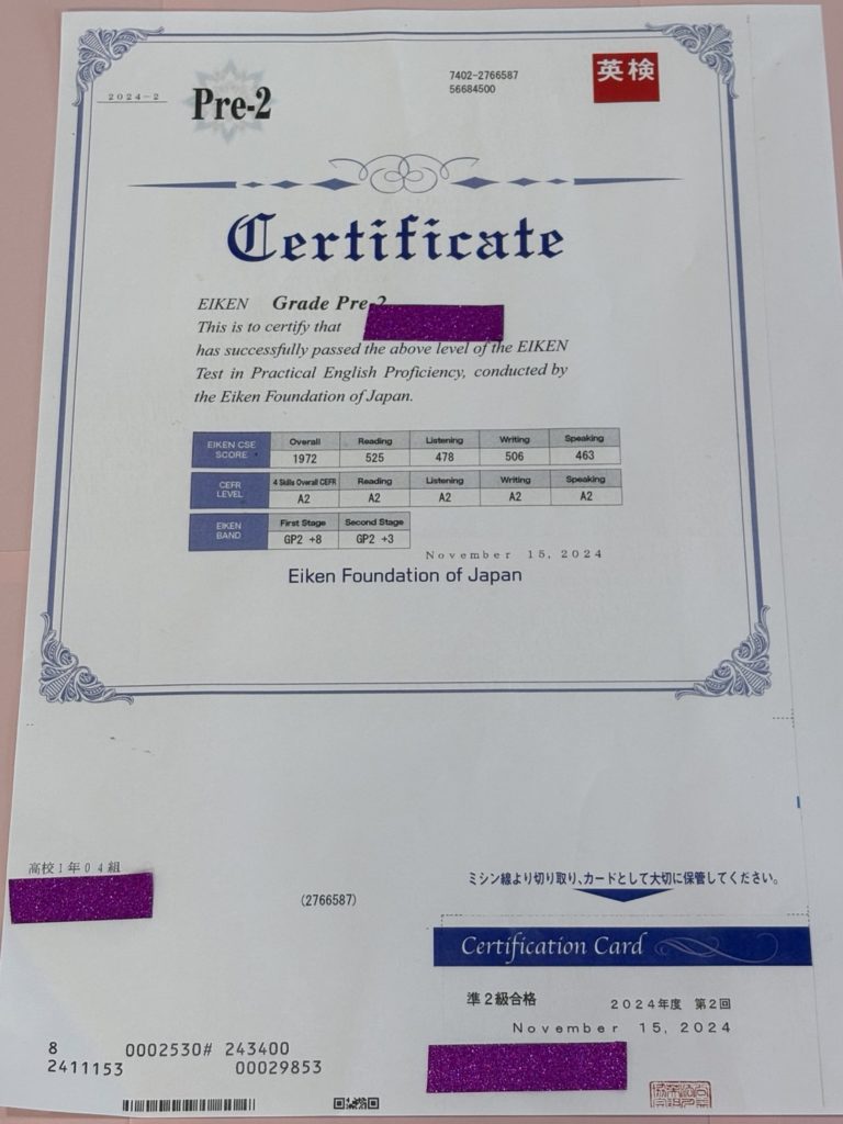英検合格おめでとう!ー続々と合格の結果が!ー